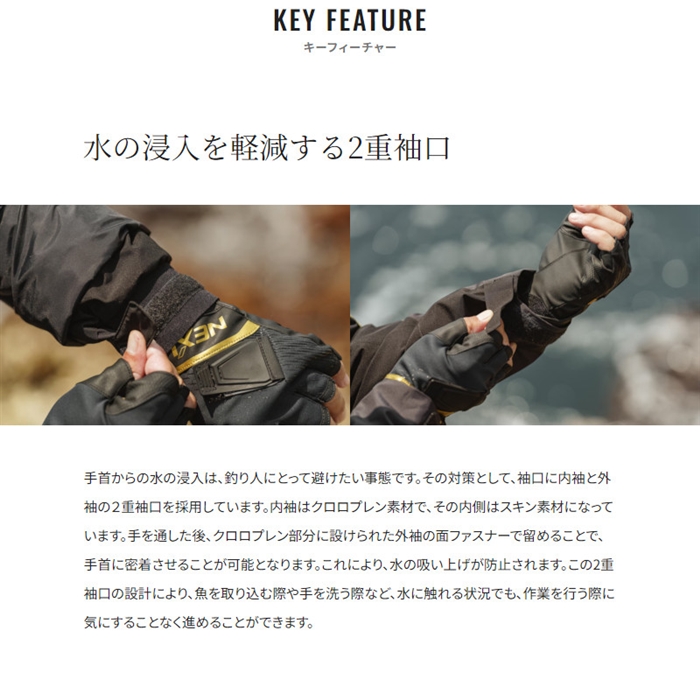 防水透湿素性のあるゴアテックス素材に加え、蓄熱裏地を搭載。厳冬のゲームでも、動きやすく暖かい機能的な防寒スーツです。ベストとのコンビネーションシステムやあごに当たりにくい襟形状など、実釣時のアングラーの動きを妨げない設計も施されています。[24new04]