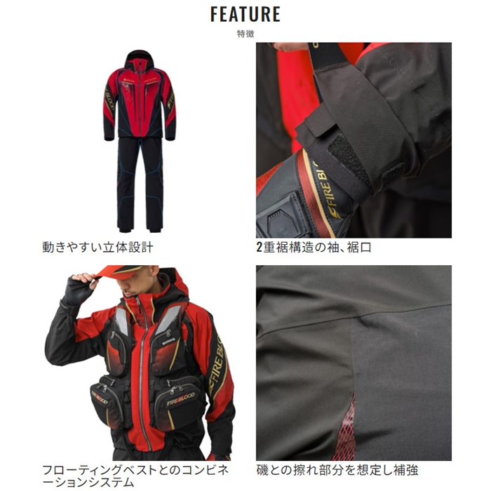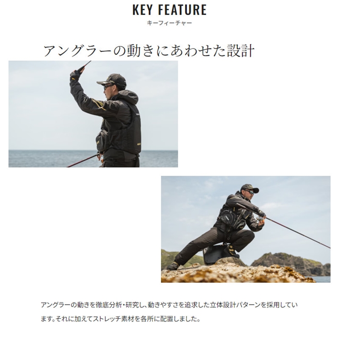 ゴアテックスのストレッチを採用したフラグシップモデルのテクノレイヤードスーツです。アングラーの動きを分析し、動きやすさを追求した立体パターン設計を採用。保温性を高める蓄熱裏地に加え、ベストとのコンビネーションシステム、あごに当たりにくい襟形状、シューズ内への波の浸水を防ぐ2重裾、耐久性向上を目指した生地の厚さ変更など、前作の機能をブラッシュアップして完成度の更なる高みを目指しました。[24new04]