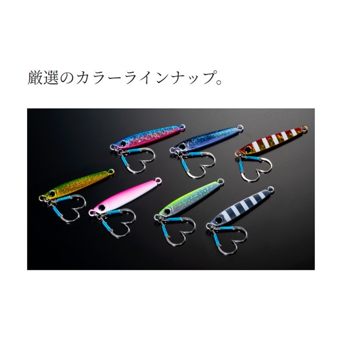 高比重タングステン素材の特性を活かし、ややフロントバランスの薄型フラットサイドボディを採用した「タングマン」。強い明滅を伴いランダムにアクションを変化させるすばやい水平バイブレーションフォールと、速やかに横を向く軽やかなジャークアクションが特徴。癖がなく扱いやすいので、パイロットルアーとしておすすめです。タングマンH 40g/50gには初めからTYPE-LJアシストSSサイズが付属。パッケージから出してすぐにご使用いただけます。[24new16][24sawaracasting]