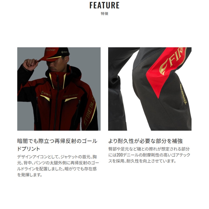 メイン素材にナイロン70デニールGORE C-KNIT Backer3Lを採用したフラッグシップレインスーツです。磯釣りの動きに特化した機能性を持ちながら軽量化に成功しました。耐久性が必要な箇所には200デニールの耐摩耗性の高いゴアテックスを採用し、適材適所の素材の配置で動きやすさと耐久性を両立させています。また、袖口の2重構造と裾口のバージョンアップで水の侵入をさらに軽減しました。キャップとのジョイントが可能なフードはキャップ未使用時にはツバがコンパクトになり視界を確保します。さらにフードには上下、前後に細かく調節できるドローコードも配置しました。ウエストはBOAフィットシステムにより素早く簡単にフィット感をあわせることが可能です。フローティングベストとジョイントすることで足元の視界を確保するコンビネーションシステムも搭載しています。[25new04]