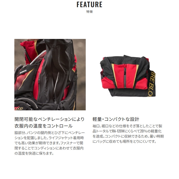 通常生地と比較して3.6℃温度上昇を抑える特殊遮熱生地を使用した、夏の磯を中心に活躍するレインスーツです。複数のベンチレーションで温度調整が可能なので日が昇ると暑く出船前や荒天時には寒いという春と秋の磯にも対応できる3シーズン設計です。磯釣り専用立体設計やフローティングベストとのコンビネーションシステムなど多くの機能を搭載しました。春から秋に適したハイスペックな磯用レインスーツです。[25new04]