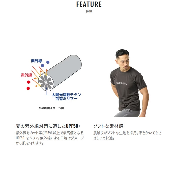 夏の紫外線対策として高い機能を誇るUPF50+のサンプロテクション機能の生地を採用。ドライでソフトな肌触りの生地で汗をかいてもさらっと快適に過ごせる暑い夏に最適な素材。遊び心にあふれたグラフィックがアクセントの1枚です。[25new04]