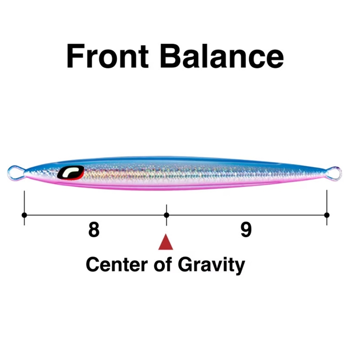 軽いジャークですばやく横を向くスライドと、その後のフリーズアクション。過剰なフォールアクションを抑えたぺブル系の特徴である肉厚ボディに、スリム化してスリットを入れ水抜け感を追求。スローからハイピッチまで青物から根魚まで対応します。スリムが故に沈みもスムーズなので、260g以上のモデルは中深海にもオススメ。[25new16]