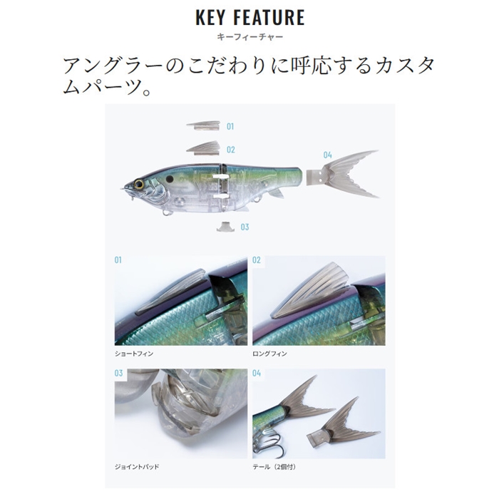 操ることに特化した、もう一つのアーマブースト機構を搭載したグラヴィテーター220SF。アングラーが意図してビッグフィッシュに仕掛けることができるグライドベイトです。ボディをコンパクトに折りたたむことで、ジョイントベイトの致命的な弱点であるキャスト時のルアーの回転を克服するアーマブースト。ジョイントベイトの従来イメージを覆す遠投性能とアキュラシーを実現しました。[25new16]