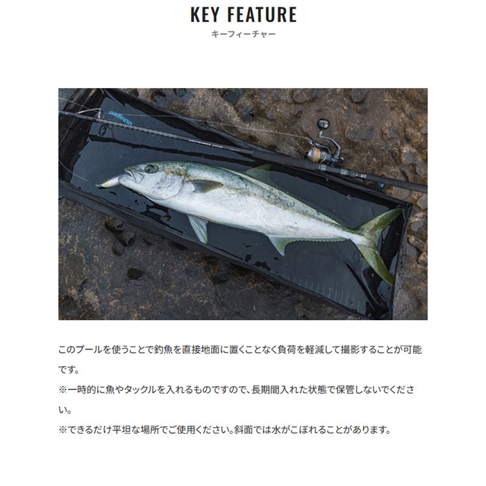 撮影のために釣った魚を地面の上に置くとどうしても弱らせてしまいます。小さくなって持ち運べるコンパクトフィッシュプールを使えば、現場で瞬時に魚を入れるプールができ、ゆっくりと魚の負荷を軽減しながら撮影することができます。魚が好き、大切にしたい、そんなアングラーに使ってほしいアイテムです。また、車にクーラーやバッグを積む際の折りたためるトランクトレーとしても重宝します。1つ持っておくと、魚の撮影、車での移動、様々な場面で活躍します。
