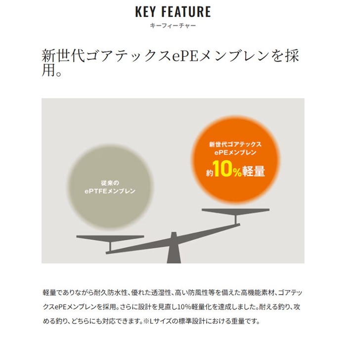 冬の釣りで求められる「保温性」と「動きやすさ」。相反するこの2つの性能を高次元で融合させたのが、このフラッグシップ防寒パンツです。中綿にはメンテナンス性と保温性に優れた「エアロカプセル」を増量して採用し、保温性能を強化。さらに軽量なGORE-TEX ePEメンブレンを採用することで、従来モデル比で約10%の軽量化を実現(※Lサイズ設計値)。長時間の釣行でも動きやすさを損ないません。中綿(インサレーション)は部位ごとに密度を調整。寒さを感じやすい大腿部には140g/平方メートル、動きやすさが求められる膝下や股まわりには120g/平方メートルを配置し、保温性と運動性の両立を追求しています。裏地には、腰まわりに起毛トリコットを、腿から下には蓄熱性に優れたカーボン糸入り裏地を採用。動きやすさと快適性を両立した設計です。さらに、腰にあたる位置にはストレッチ性のある生地を配置し、動きに追従してウエスト位置を安定させ、隙間風の侵入も抑えます。細部まで釣りに特化した機能を積み上げることで、防寒性・動作性・フィット感のすべてを高次元でバランス。冬の釣りに集中できる、実用性の高い1本です。[25new04]