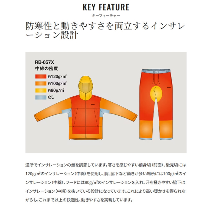 化繊インサレーションを採用したこのジャケットは、ダウンに比べて濡れても嵩高が減りにくく、乾きが早い特性を持ちメンテナンス性が良いのが特徴です。胸の大容量のポケットは肩掛けタイプの自動膨脹ライフジャケット、ゲームベスト等の着用時にも邪魔にならずにアクセスできるデザイン。ファスナーには止水性を持たせる処理を施したものを配置して水の浸入を軽減しました。生地の表側はマットな糸を採用し、しっとりとした質感を実現しています。裾や袖の面ファスナーアジャスト、パンツの前開き、ウエスト調整、フードアジャストなど、機能性に優れた装備を各所に配置し耐久防水基準であるドライシールドもクリアしている非常にコストパフォーマンスに優れたモデルです。[25new04]