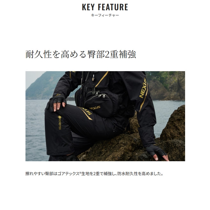 磯釣りは、コマセワークや魚とのやり取り、磯の上を移動するなど、身体全体を使う動きの激しい釣りです。RT-133Yでは、そんな磯でのさまざまな動きや身体の可動域を分析し、動きやすさを追求した立体パターン設計を採用しています。従来のePTFEメンブレンと同等の性能を保ちながら、より軽量なゴアテックス ePEメンブレンを今季初めて採用することで生地において10%の軽量化(※シマノ社従来品との比較)を達成。フローティングベストとジョイントすることで一体感が向上し、足元の視界の広さを確保しています。擦れやすい臀部をゴアテックス生地を2重で補強することで防水耐久性を高めました。水を吸い上げないクロロプレン素材の内袖を面ファスナーでフィットさせる仕組みで、水の浸入を軽減します。裏地には蓄熱効果のあるカーボン糸を採用し、試験結果ではカーボン糸なしの裏地と比較して約2度から3度高い温度をキープ。冬の寒い釣り場でもアングラーの身体を保温します。この裏地はインナーやミドラーとの滑りが良くなるため、レイヤリングコーディネートに適しています。フードのアジャスターは片手でタブを引くだけでフィット感を調整できる構造で、テープの表面をポリウレタンフィルムでラミネートし、止水性を持たせる処理を施したファスナーを採用。樹脂射出成型のビスロンタイプはコイルタイプに比べて塩ガミに強いのが特徴です。さらに、静電気を放電するテープを採用し、冬の着脱時やドアノブに触れる際の静電気の発生を軽減。これにより、冬の静電気による不快感を軽減し、快適な着用感を提供します。[25new04]