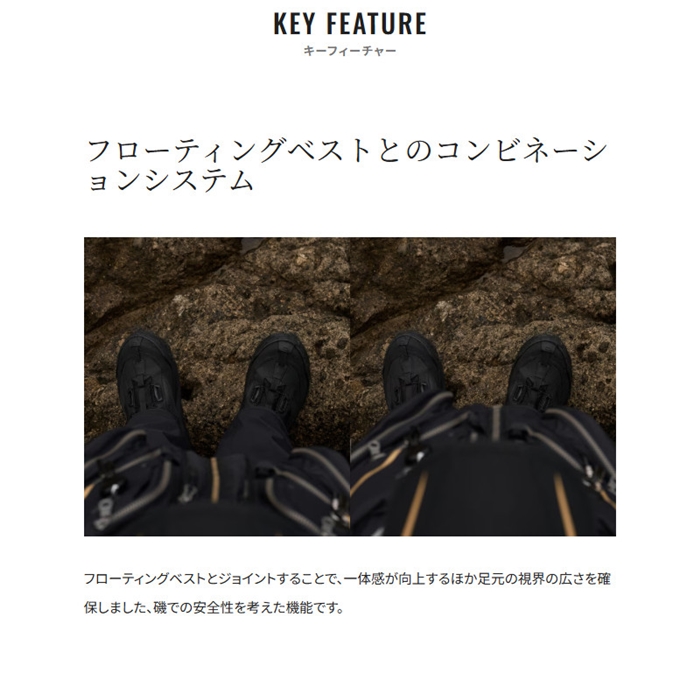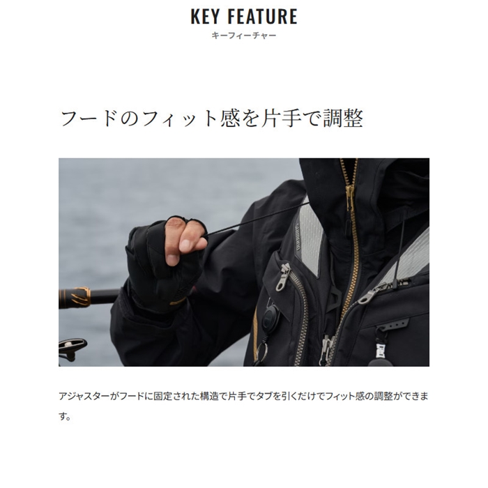 磯釣りは、コマセワークや魚とのやり取り、磯の上を移動するなど、身体全体を使う動きの激しい釣りです。RT-133Yでは、そんな磯でのさまざまな動きや身体の可動域を分析し、動きやすさを追求した立体パターン設計を採用しています。従来のePTFEメンブレンと同等の性能を保ちながら、より軽量なゴアテックス ePEメンブレンを今季初めて採用することで生地において10%の軽量化(※シマノ社従来品との比較)を達成。フローティングベストとジョイントすることで一体感が向上し、足元の視界の広さを確保しています。擦れやすい臀部をゴアテックス生地を2重で補強することで防水耐久性を高めました。水を吸い上げないクロロプレン素材の内袖を面ファスナーでフィットさせる仕組みで、水の浸入を軽減します。裏地には蓄熱効果のあるカーボン糸を採用し、試験結果ではカーボン糸なしの裏地と比較して約2度から3度高い温度をキープ。冬の寒い釣り場でもアングラーの身体を保温します。この裏地はインナーやミドラーとの滑りが良くなるため、レイヤリングコーディネートに適しています。フードのアジャスターは片手でタブを引くだけでフィット感を調整できる構造で、テープの表面をポリウレタンフィルムでラミネートし、止水性を持たせる処理を施したファスナーを採用。樹脂射出成型のビスロンタイプはコイルタイプに比べて塩ガミに強いのが特徴です。さらに、静電気を放電するテープを採用し、冬の着脱時やドアノブに触れる際の静電気の発生を軽減。これにより、冬の静電気による不快感を軽減し、快適な着用感を提供します。[25new04]