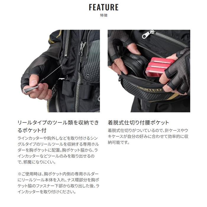 浮力材・ポケット配置を見直し、さらに動きやすく、使いやすくなったフラッグシップ磯フローティングベストの枕付モデルが登場。今季のモデルでは、ウィンドストッパー バイ ゴアテックス ラボ生地を採用し、防風透湿、撥水機能に加えて、ウェアアウターと同じ発色の生地感でトータルコーディネートできるデザインを実現。あらたに搭載したピンオンリールホルダーでツール収納性も向上しました。[25new04]