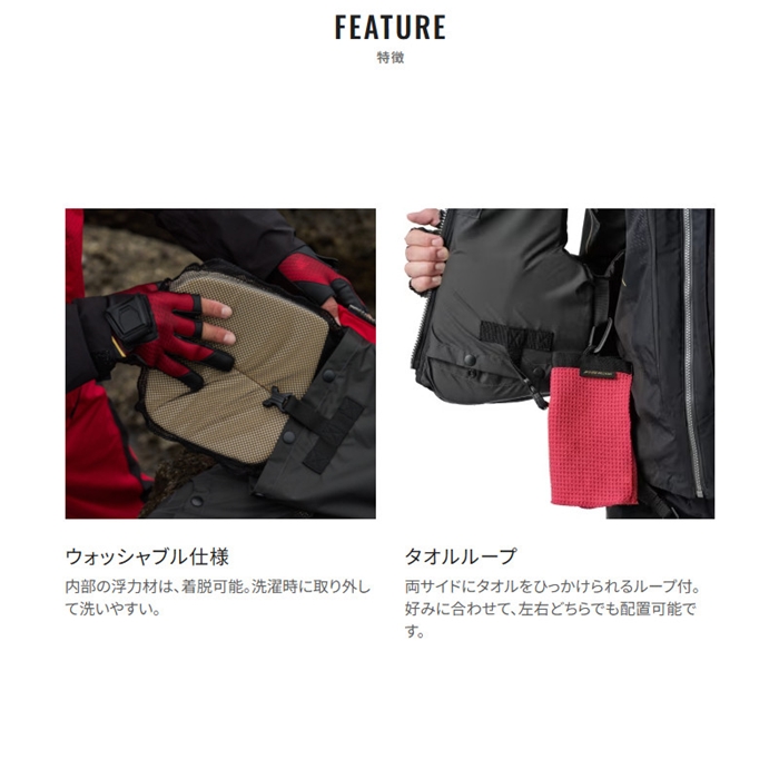 浮力材・ポケット配置を見直し、さらに動きやすく、使いやすくなったフラッグシップ磯フローティングベストの枕付モデルが登場。今季のモデルでは、ウィンドストッパー バイ ゴアテックス ラボ生地を採用し、防風透湿、撥水機能に加えて、ウェアアウターと同じ発色の生地感でトータルコーディネートできるデザインを実現。あらたに搭載したピンオンリールホルダーでツール収納性も向上しました。[25new04]