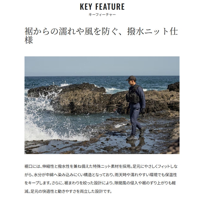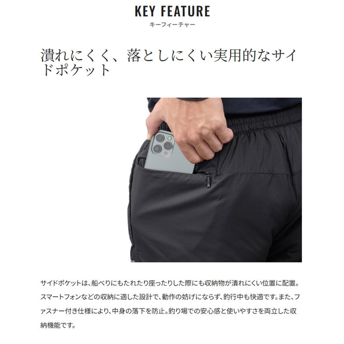 冬のオフショアジギングやロックショアゲームなど、寒さの中でアクティブに動く釣りに求められるのは、保温性と動きやすさの両立。相反するこれらの機能を高次元で融合させたのが、このインサレーションパンツです。中綿には、メンテナンス性と軽量性に優れた「エアロカプセル」を採用し、寒冷下でも体温をしっかりキープ。さらに、部位ごとの断熱バランスを最適化することで、熱のこもりすぎを防ぎながら高い防寒性能を実現しました。防寒性と快適な動作性を両立することで、釣りに没頭できる理想的なミドルレイヤーとして、冬の釣行をしっかりと支えます。[25new04]