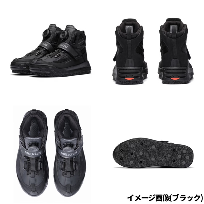 幅広甲高の日本人の足に合う足型を採用しているため、自然なフィット感が得られます。また、BOAフィットシステムのダイヤルにはMサイズを採用しており、太いワイヤーと相まって全体的にしっかりと締め込むことができます。さらに、前下がりの磯でも親指に負荷をかけないように甲ベルトを採用しています。耐久性に関しては、ソールとミッドソールが大きくなったことで、靴本体に磯が当たりにくい構造となり、本体の耐久性が向上しています。防水性能についても、ブーティーにドライシールド+を採用することで、防水の耐久性能が向上しています。戦闘力が向上したネクサスの磯シューズをぜひ履いて体感してください。[25new04]