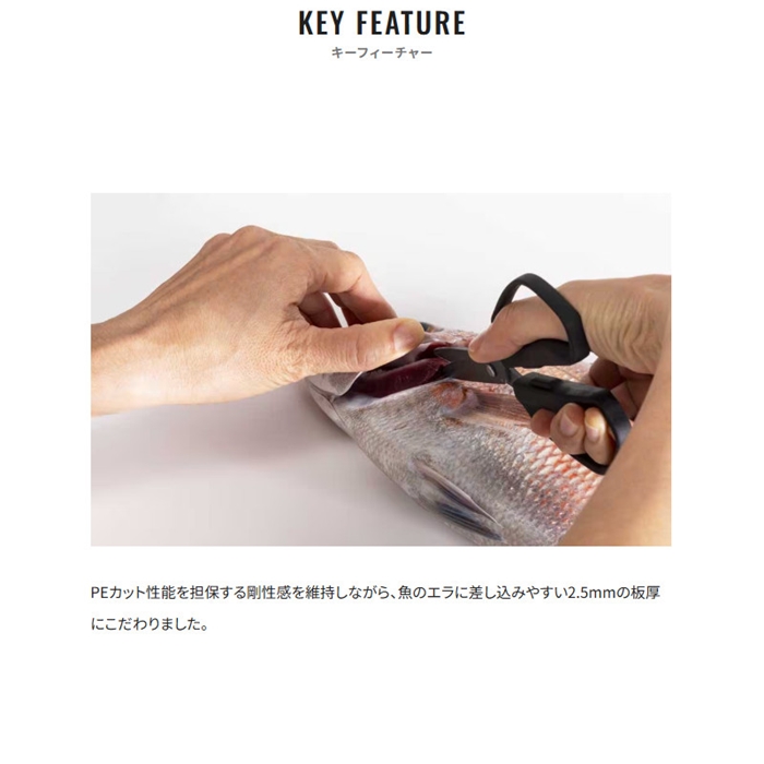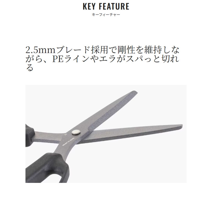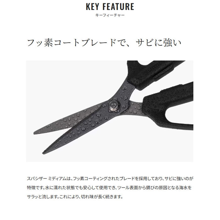 約800年の歴史を誇る、世界的な刃物の産地・岐阜県関市の職人がひとつひとつ手作業で造った釣り専用ハサミです。「PEラインをスパッと切れるだけでなく、魚も締めたい」。「釣り場に持っていくにはできるだけコンパクトにしたい」。そんなわがままをギュッと凝縮してできたのがスパシザー ミディアムです。またハンドル部分は、手袋をつけたままでも使いやすいように穴が大きなデザインを採用しています。
