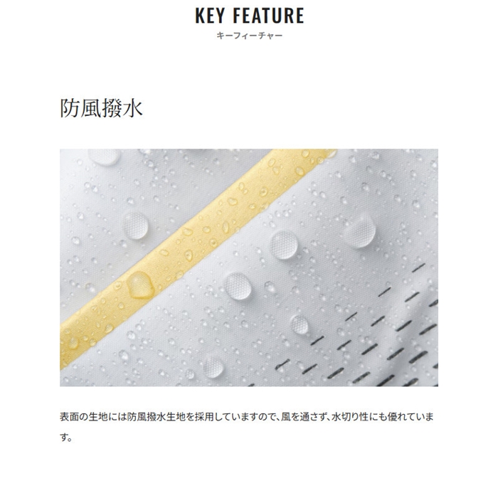 【素材】 [表] ナイロン100%(ポリウレタン透湿防風加工)、[裏] ナイロン100% [メッシュ部分] ポリエステル100%