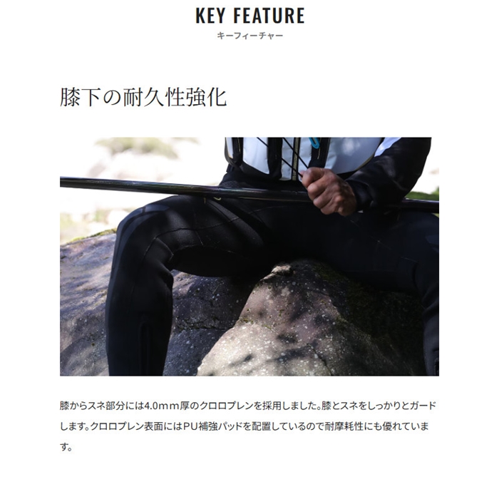 ストレッチ性の高いジャージ生地と立体裁断を採用し、動きやすさとフィット感を両立させた鮎タイツ。膝下部分をしっかりと補強し、耐久性、保護性にも優れたリミテッドプロモデルです。鮮やかなブルーの登場で、リミテッドプロの新たなトータルコーディネートもお楽しみいただけます。[26new04]