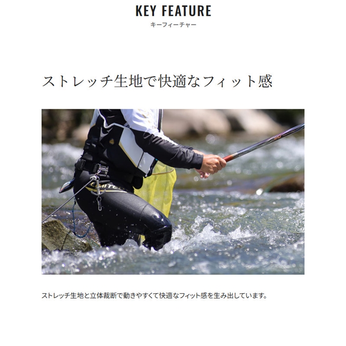 ストレッチ性の高いジャージ生地と立体裁断を採用し、動きやすさとフィット感を両立させた鮎タイツ。膝下部分をしっかりと補強し、耐久性、保護性にも優れたリミテッドプロモデルです。鮮やかなブルーの登場で、リミテッドプロの新たなトータルコーディネートもお楽しみいただけます。[26new04]