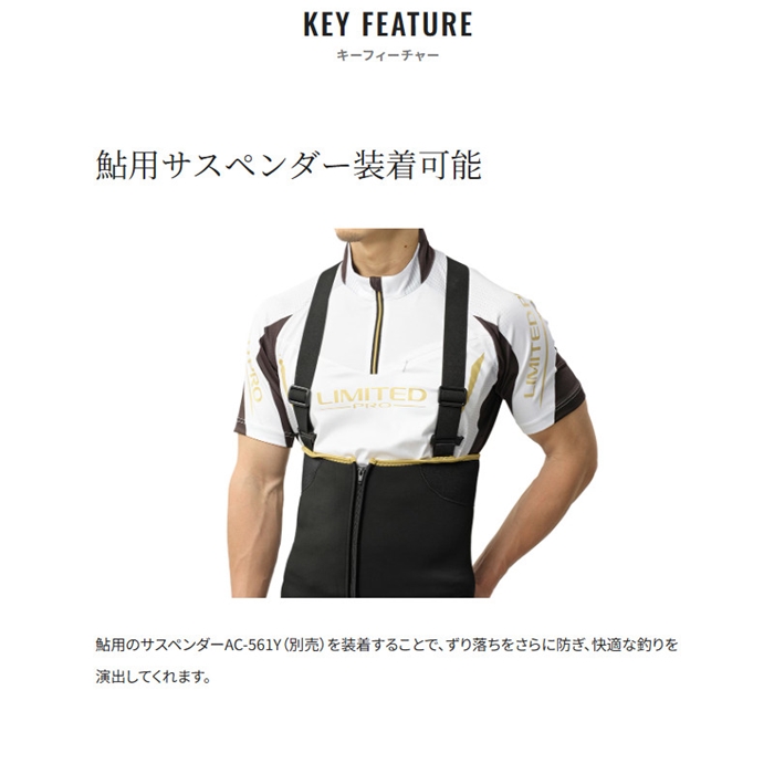 ストレッチ性の高いジャージ生地と立体裁断を採用し、動きやすさとフィット感を両立させた鮎タイツ。膝下部分をしっかりと補強し、耐久性、保護性にも優れたリミテッドプロモデルです。鮮やかなブルーの登場で、リミテッドプロの新たなトータルコーディネートもお楽しみいただけます。[26new04]