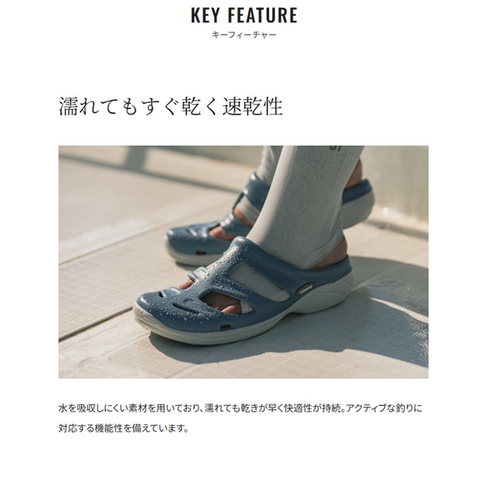 船釣りや釣行時の移動、普段使いまで幅広いシーンを想定した実用性の高いサンダルです。ソールには、濡れた場所でもグリップ力を維持しやすい素材を採用。滑りやすい船上などでも安定感をサポートします。通気性に優れた設計で、暑い季節も快適な履き心地をキープ。釣りと日常のどちらにもフィットする一足です。[26new04]