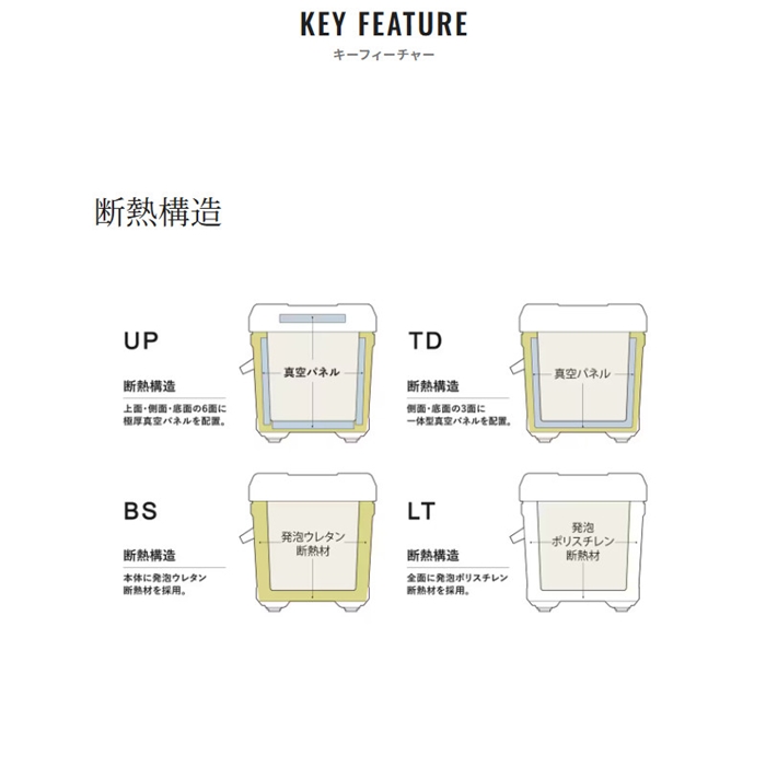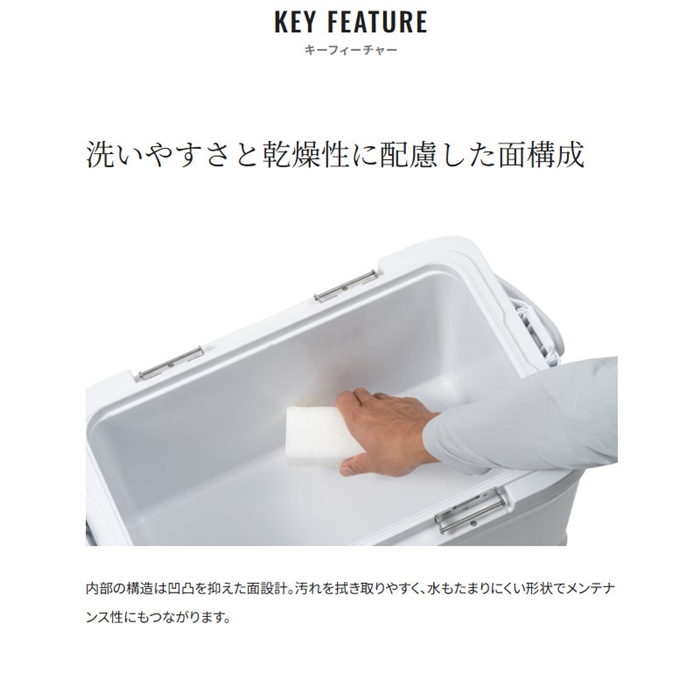 保冷力・操作性・堅牢性をバランスよく備えた、汎用クーラーボックスの中核モデル。モデルごとの仕様に合わせた断熱構造を採用し、釣行に必要十分な保冷性能に配慮しています。両面から開閉でき取り外しも可能なフタ、抗菌加工を施したボディ、水抜きしやすいワンタッチ水栓など、釣りでの使用を想定した使い勝手を追求。シンプルな面構成は洗いやすさや乾燥のしやすさにもつながり、メンテナンス性にも配慮されています。さらに、オプションパーツによる機能拡張にも対応し、スタイルや釣種に合わせたカスタマイズが可能です。[26new03]