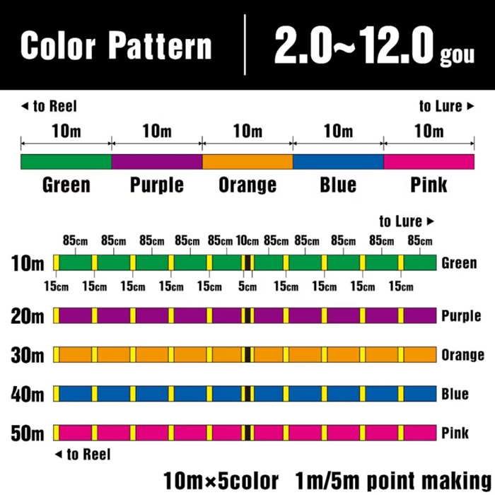 PE素材には耐摩耗性と高強度を兼ね備えたイザナスを使用。緻密な8本編にすることで高感度かつ、しなやかに仕上げました。また、表面を平滑に仕上げたことでガイドノイズが少なく、かつ水切れも良いので、バーチカルのみならずキャストを必要とする釣りにも活躍します。カラーパターンはシンプルに見やすく、5色×10mおよび1mと5mの位置に設けた視認性の良いマーキングで狙いのタナがひと目で分かるため、正確でスピーディなタナ取りをサポートします。2026年、シマノ電動リールのラインキャパシティにピッタリとフィットするシリーズを追加しました。