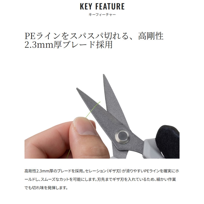 世界的な刃物の産地・岐阜県関市の職人が一つひとつ手作業で仕上げた小型バサミスパシザーの「先鋭」タイプ。PEラインに特化したカット性能はそのままに、より握りやすいデザインになりました。切りにくいPEラインも、テンションをかけずにスムーズにカットでき、グローブを付けたままでも使用できます。