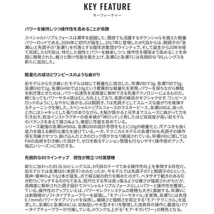 シマノ 26 スペシャル トリプルフォース 急瀬G 90 について