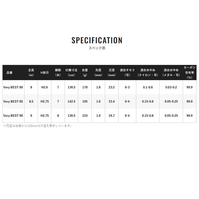 【注記】 ※元径は後端から100mmの外径を表示しています。