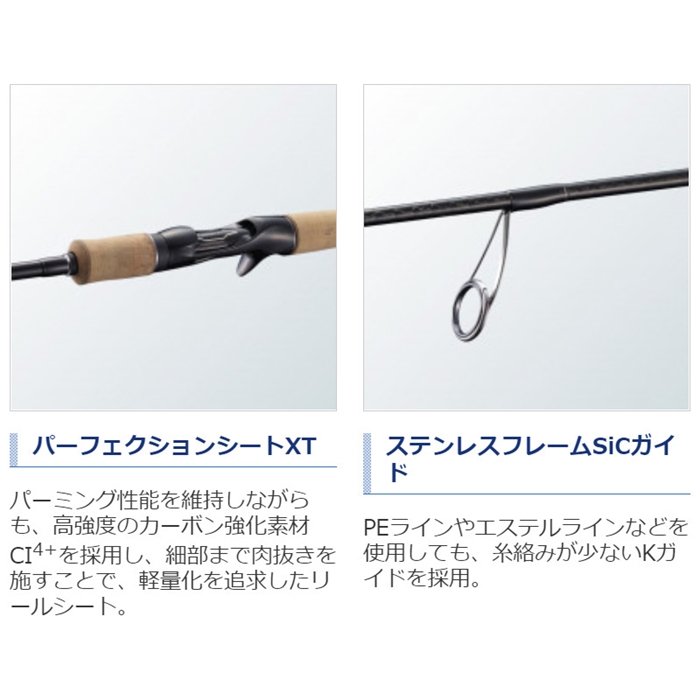 スパイラルX搭載。細身軽量かつ強度を手中にしたシリーズ。ネイティブトラウトシーンを翻弄するNXシリーズに待望のスパイラルXを搭載。パワーロスを生むブレやネジレの徹底削減に成功。ベイトモデルには「パーフェクションシートXT」を搭載し、前作よりも細身軽量でありながら強度と操作性を向上しました。[CARDIFF NX]