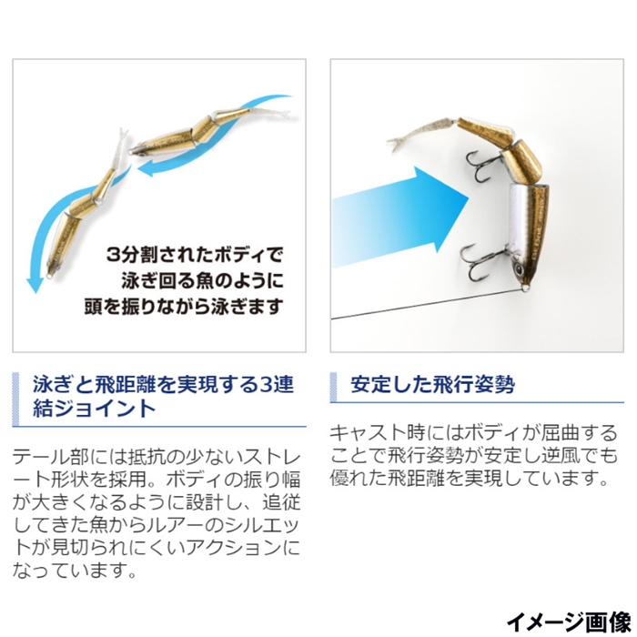 逆風でも飛ぶ、大きく動く、そして釣れる!!獲るための奥の手、マイクロスイムベイティング!ハイプレッシャー化するフィールドで如何にして魚に口を使わせるかを追求した結果、導き出した一つの答えが「Btベイト」です。寄せる力・魅せる力そして喰わせる力を兼ね備えています。マイクロスイムベイティング専用ロッド「バンタム274L-SB(別売)」と組み合わせれば、彼方のピンスポットまで飛ばして、繊細にモンスターを誘って獲ることが可能となります。[Bantam Bt Bait 99SS]