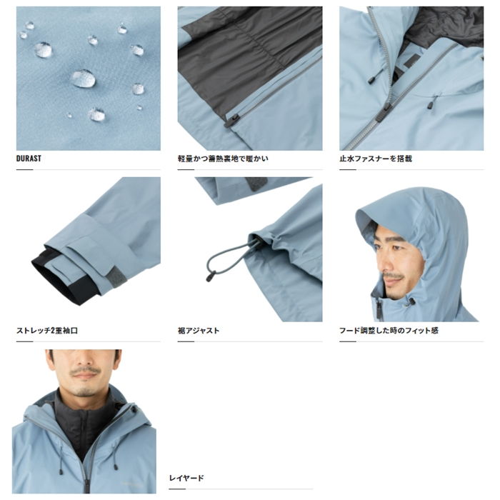 秋口から冬、春先までの釣りには、体温を調整するための重ね着が必須。防水透湿生地DURASTを採用した3シーズン対応のレインジャケットは、着ていることを忘れるほど軽量なのに高機能。蓄熱裏地によって中綿がなくてもゴワつかずに暖かさをキープしてくれる。さらに水や冷気の侵入を防止する2二重袖口やフードがさっと着用&調整できるフードアジャスターなど、釣行中の快適性を考え抜いた機能が盛り込まれている。バス・シーバスからエギング、ライトゲームはもちろん、オフショアでも活躍するレインジャケット。インナーやミドルと合わせて、おしゃれ&体温調整も可能な着回しを楽しもう。