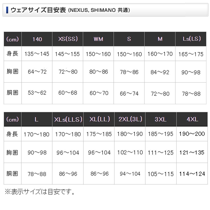 (身長)175-185cm、(胸囲)96-104cm、(胴囲)86-96cm