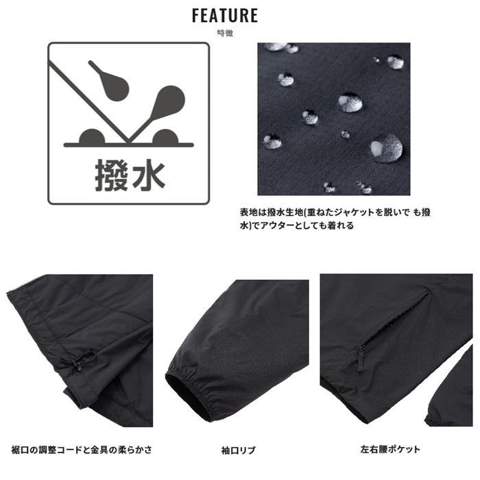 1枚でも暖かく、重ね着でも高い保温性を発揮するミドラー。アクティブなアングラーの中には、動き回ることでウェア内が熱くなることに悩む人も少なくない。そんな、行動的なアングラーにうってつけなのがこのインシュレーションジャケット。春先や秋から初冬にかけては、これ1枚でしっかり暖かい。表地は撥水加工となっているので、波しぶきや小雨程度であれば対処可能。寒さが厳しくなる冬には、これをミドラーにしてジャケットをプラス。真冬には中綿入りの防寒具と合わせれば、秋から春先まで季節を問わず使いこなせる。また適度に伸縮するため動きやすく、スマートなシルエットも魅力。機能性とともにデザインを重視する人にもおすすめ。