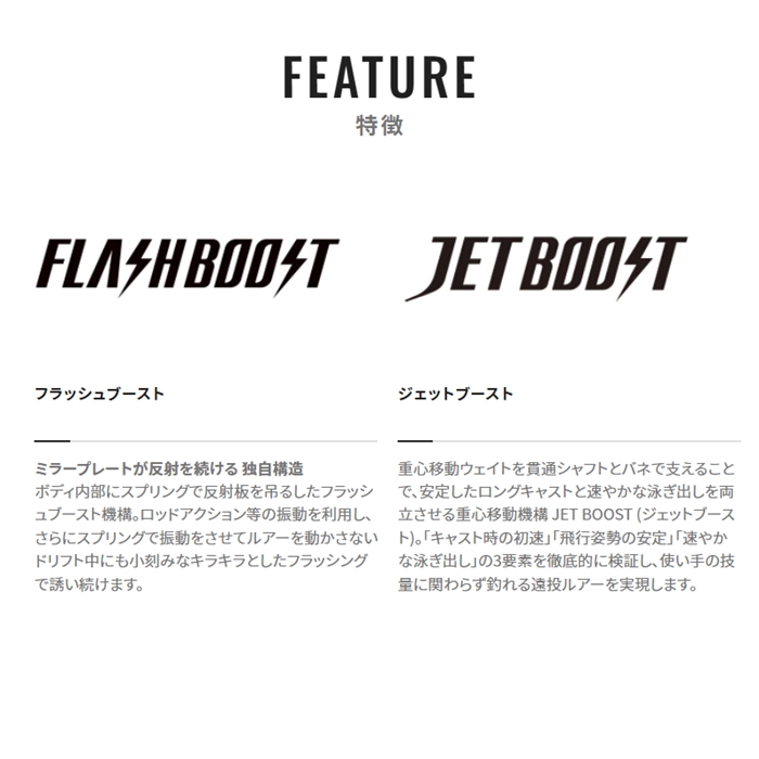 もっとブリブリ泳ぐ99が欲しい!という多くの要望に、喰わせの間を取るサスペンドチューンで応えたアサシン99サスペンドがフラッシュブーストを搭載して登場。様々な使用環境が考慮されるシーバスフィッシングにおいて、対応力の高いサスペンド設定を求めて、春先の河口に近い汽水域で浮力調整しました。使用環境の塩分濃度や水温、また使用するスナップなどによってルアーが浮いたり、また沈んだりすることもあります。その際は、フックやリングのサイズを変更することで浮力を調整してご使用ください。[EXSENCE SILENT ASSASSIN 99SP FLASH BOOST]