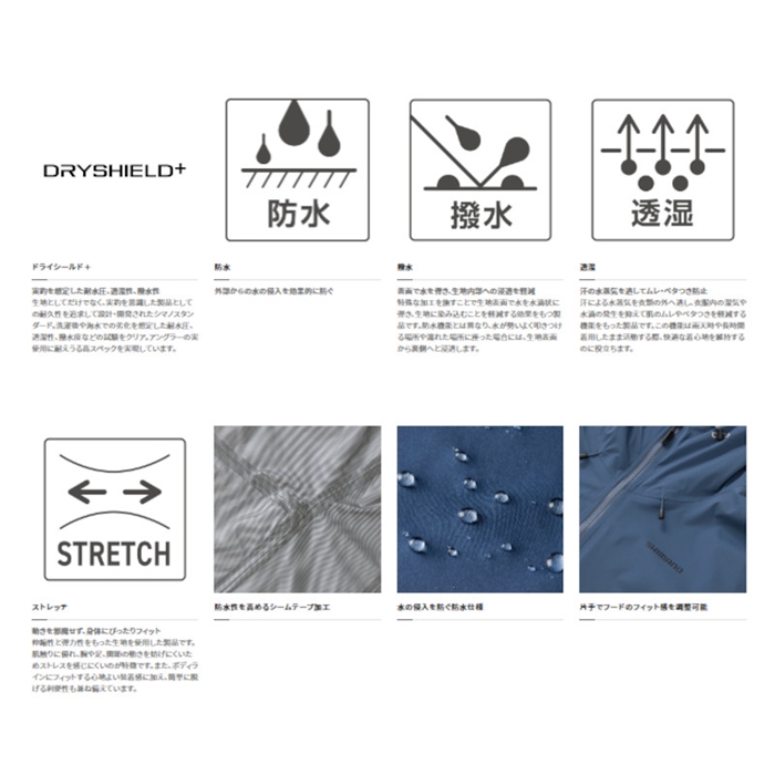 防水・透湿・ストレッチ性に優れる、レイヤードレインの定番ジャケット シマノの防水透湿基準をクリアしたストレッチ素材を採用したレインジャケットです。軽量で動きやすい設計に加え、レイヤード(重ね着)時の美しいシルエットにこだわりました。春秋はもちろん、ミドラーで調整することで、通年着まわせるアウターシェルです。[22new04]