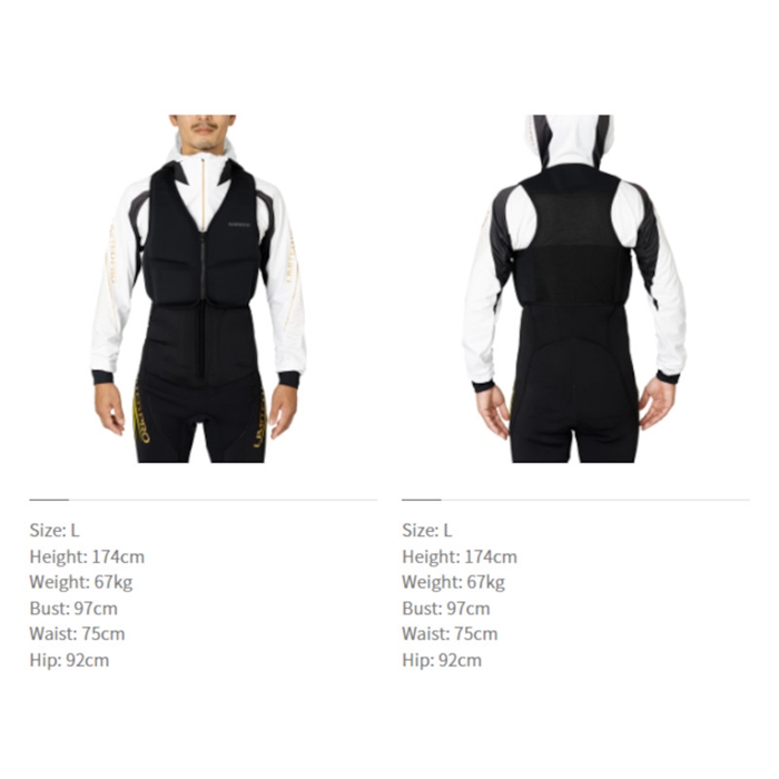 前側に衝撃緩衝材が入った、動きやすい鮎ガードベスト。クロロプレン1.5mm厚を使用した、衝撃緩衝材入りのガードベスト。緩衝材は前側上下左右の4か所、更に脇腹部分左右2か所に装備。鮎ベストの下に着込めるようサイズを調整しており、背中側にメッシュ素材を採用することで夏場でも涼しく着ることができます。※緩衝材は浮力も持っているため、深い水深で使用すると体が浮いてしまうことがあるのでご注意ください。[23new04]