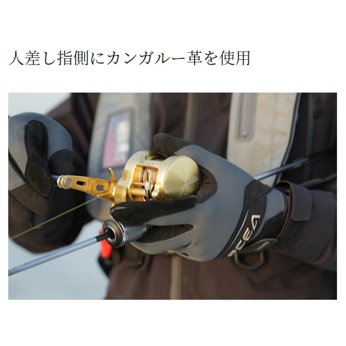 人差し指部分にカンガルー革を採用、手のひらには衝撃緩和パッド入れるなど、過酷なオフショアゲームや遠征での使用にも耐えうる冬用グローブです。人差し指が奥まで入れやすい設計で、キャスティング時のリリースタイミングが取りやすくなっています。ノット締め込み時などに負荷のかかる親指のレザー配置にもこだわった、スキのない一品となっています。[23new04]