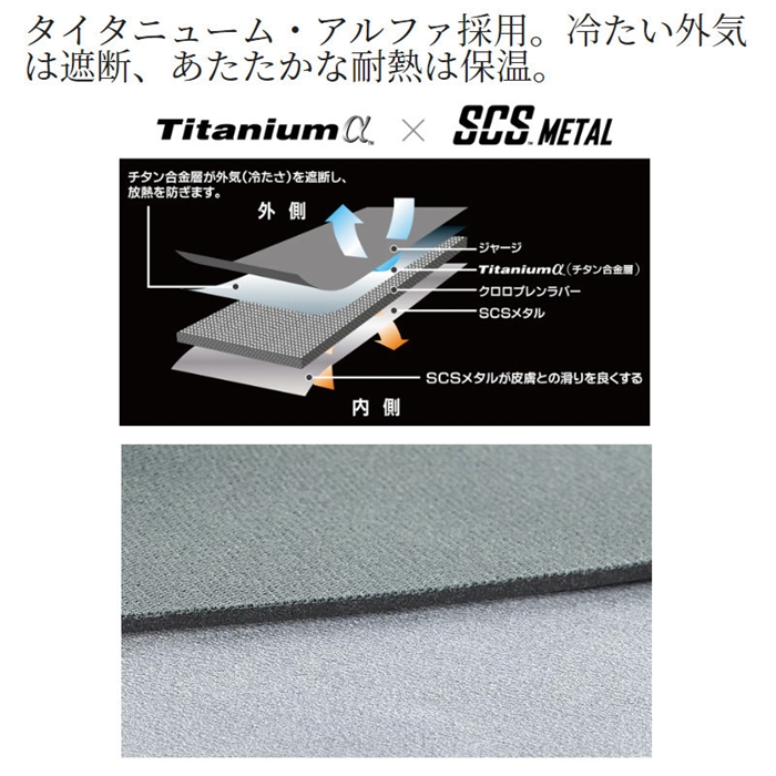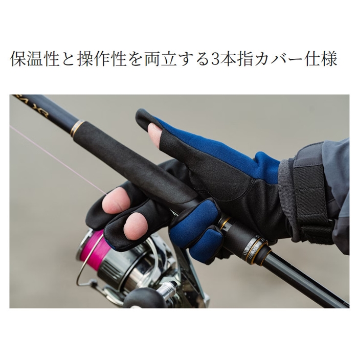 保温性のあるタイタニューム・アルファに加え、手のひらには操作性だけでなく過酷な環境での使用を想定した耐久性を獲得するために合皮素材を採用。手のひら部分の合皮革を従来品と比べ厚くすることで安心感が向上しました。手首まで覆うロング仕様で防寒性にも優れています。保温性と操作性を両立する3本指カバー仕様です。[23new04]