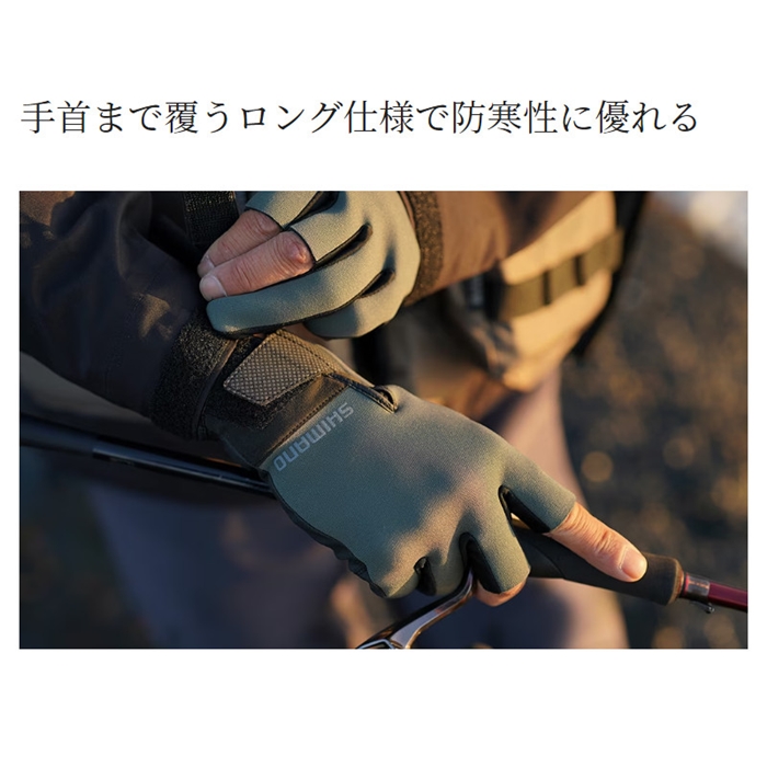保温性のあるタイタニューム・アルファに加え、手のひらには操作性だけでなく過酷な環境での使用を想定した耐久性を獲得するために合皮素材を採用。手のひら部分の合皮革を従来品と比べ厚くすることで安心感が向上しました。手首まで覆うロング仕様で防寒性にも優れています。保温性と操作性のバランスに優れる3本指ぬき仕様です。[23new04]