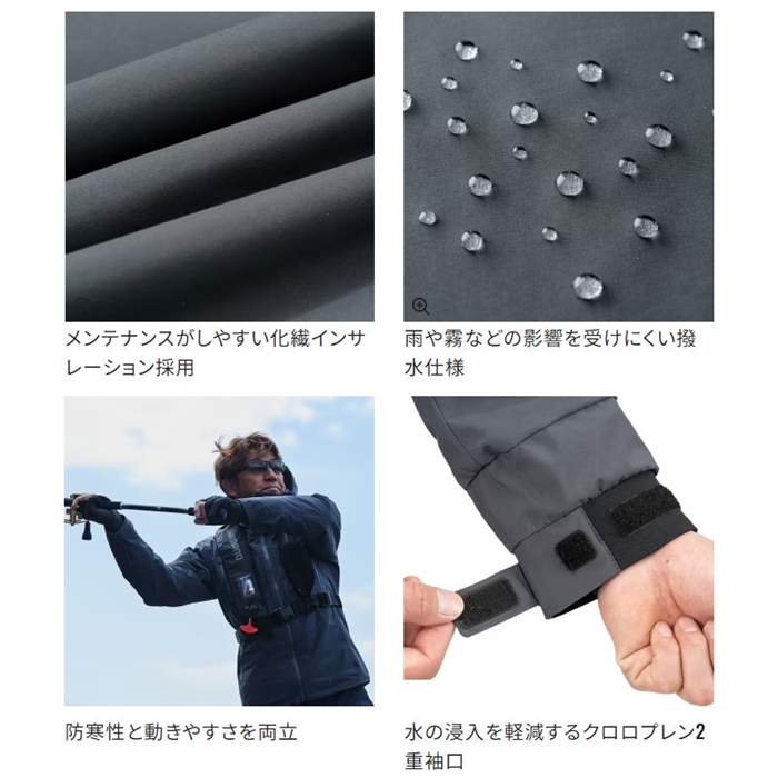 メンテナンスしやすい化繊インサレーション(中綿)にゴアテックス搭載のインサレーションレインジャケット。少ない枚数で暖かく軽い着心地を実現するサーマルレイヤードに適したアイテムで、従来品RB-01JUと比較してメインのインサレーションを150%へ増量しました。釣りの動きを考慮し、120g/平方メートル、100g/平方メートルのインサレーションを寒さを感じやすい部位と可動性を重視する部位に合わせて配置し動きやすさにも配慮しています。[23new04]