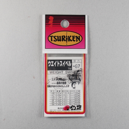 厳重なウエイト管理を行っていますので浮力を抑えた繊細な釣りに威力を発揮します。シビアな浮力管理ののウキとのコンビネーションは抜群です。-G7や-G5は小型で与浮力の少ない感度優先のウキに使い、-G2や-Bはハリスに余分なものを一切つけないフカセ釣りに効果があります。また、水中ウキやガン玉を使用する場合はウエイトスイベルの重量分をマイナスしたサイズを選びます。ステンレス素材の使用で錆や腐食に強く、繰り返しの使用にもなめらかな回転が持続します。