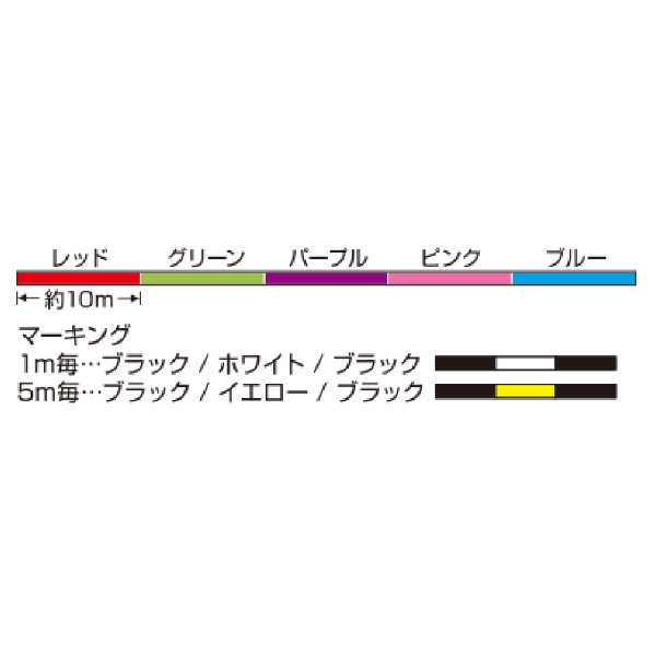 【カラー】 レッド・グリーン・パープル・ピンク・ブルー(10m毎に5色)