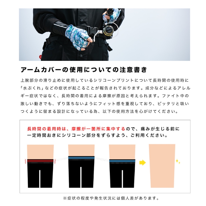 紫外線防御効果の最も高い基準であるUPF+50を採用。日焼けによる炎症の原因となるUVBを防ぎます。
