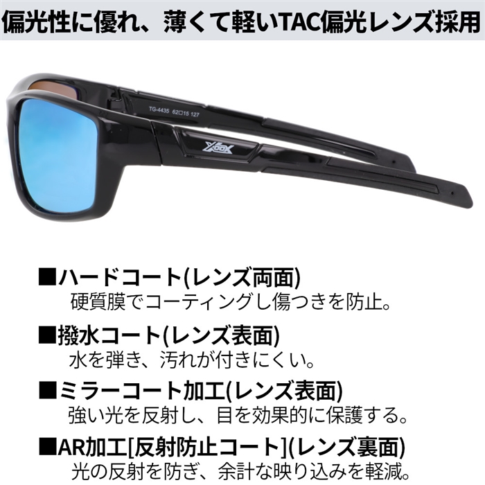 横長のレンズで視野が広いスクエアタイプ。機能を高める3種類のレンズコーティングを施し、より快適な視界性能を追求したモデル。[TG-4435][UVカット][偏光グラス][エックス・オー・エックス][24new04]