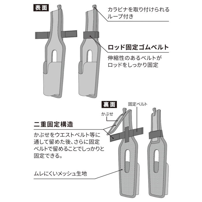 ルアーチェンジや移動時にロッドを差して両手をフリーにできる便利グッズ。バスフィッシングでのスピニングロッドとベイトロッドの2本持ちや、アジングでのソリッドティップとチューブラティップの2本持ちなど、タイプやサイズの違うロッドをポイントや状況に合わせて使い分けるときにも重宝します。[TG-1341][エックス・オー・エックス]
