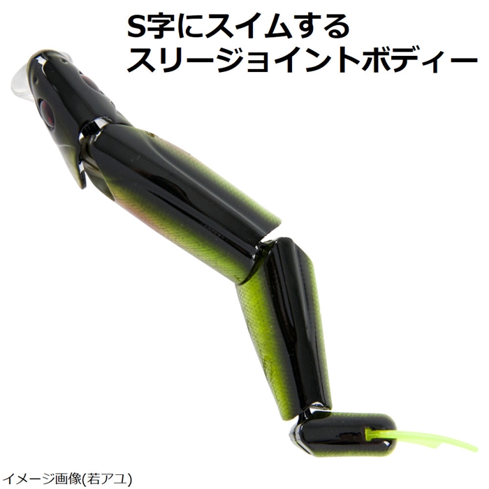 スローリトリーブで、なまめかしくS字にスイムするスリージョイントボディー。ジョイントボディーでありながら、安定した飛行姿勢により抜群の飛距離を実現!ゆっくりとリトリーブするだけで強烈にアピール。潜行深度は約50cm。シャロー域では浮力を活かしたカバークランキングを可能にします。[BAIT]