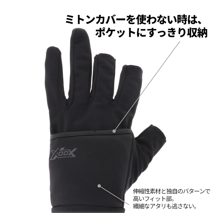 抜群のフィット感と操作性を誇るライトゲーム特化の軽量防寒グローブ。抜群の感度を維持しつつ、ミトンカバーと3本切カバーの2タイプで、繊細な指先を冷気からガード。[TG-3188][エックス・オー・エックス][[25new04]