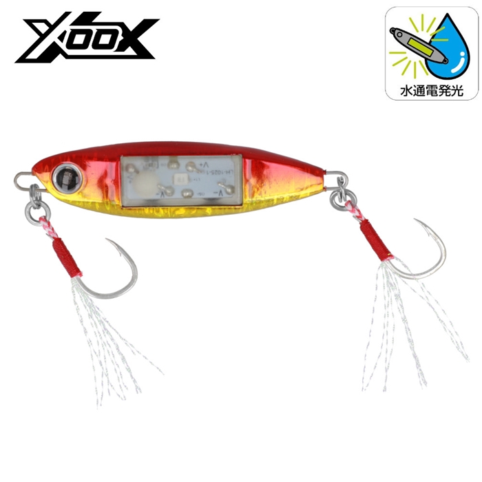 水中通電式で、水に入れるとライトが点滅する「光るメタルジグ」。ライトショアジギングに特化したひとくちサイズのコンパクトタイプ。フロントとリアにシングルフックを装着し、ジャークからリトリーブまで、様々なアクションに対応。青物はもちろん、根魚やフラットフィッシュ、シーバスなど多くのフィッシュイーターがターゲット。ショアだけでなく、オフショアにて浅場でのスーパーライトジギング(SLJ)にもおすすめ。[TG-6010][FLASH METAL][エックス・オー・エックス][24new16]
