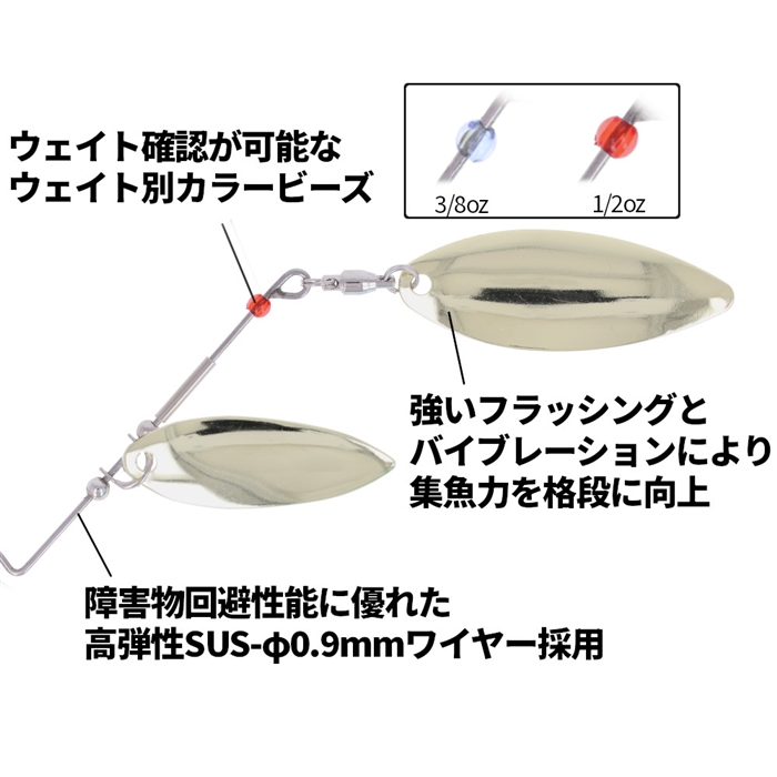 ワイヤーとブレードの絶妙なバランス設計により、強いフラッシングとサーチベイトとしての障害物回避性能を高めたスピナーベイト。水平フォールを得意とし、橋脚周りや水深のあるフィールドも攻略![CM-649][FALKEN R][26new16]
