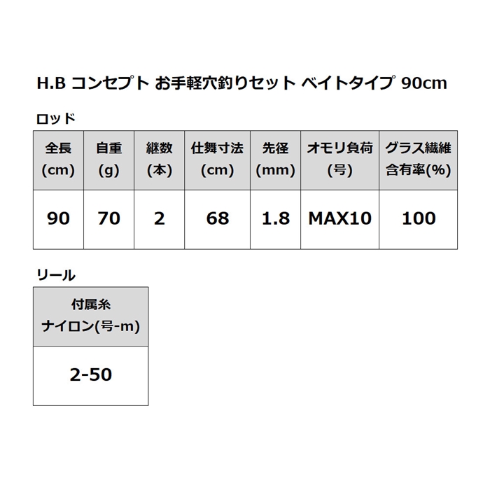 H.B コンセプト お手軽穴釣りセット ベイトタイプ 90cm ブラック について